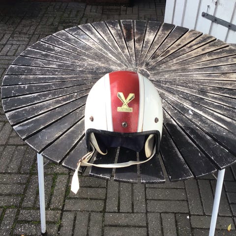 A g v polle styrthjelm retro / gammel og helt original , lige til retro / veteran knallert