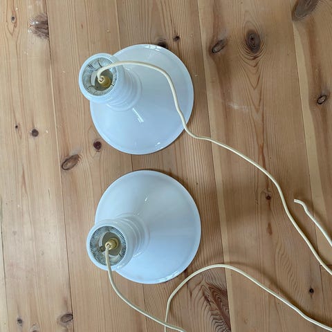 2 velholdte lamper uden ridser og skår sælges. Ledningen er fjernet men alle dele ude over ledning medfølger.ø 30 cm.