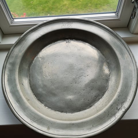 Stort tinfad i Jugenstil, Flot stort tinfad d 46 cm. Fra Gero - fabrikken - grundlagt 1912• Produkter fra 1923- 54 laves i overgangen mellem Jugenstil til Art Deco - fadet har enkelte brugsspor! 375 kr