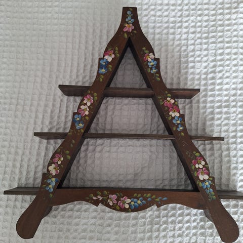 Blomsterhylde, To tunge blomsterhylder i gips (ret tunge) med ophæng og diverse skader og slid - brugt og patineret romantisk interiør til dit kolonihavehus el. Sommerskur.