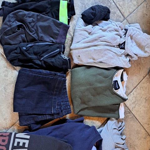 Drengetøj ca. fra str. 10-15 år. I alt ca. 122 stk. tøj. Det er meget blandet. Det er masser af fede tøjmærker. Det er i god stand, skal dog lige friskes op med en tøjvask. Der er mange shorts, bluser, skjorter, t-shirts, lange bukser, fodboldstrømper, 3/4 lange Hummel træningsbukser, trøjer, en festjakke str. 12/13 år, mm. Der er for rigtig mange penge. Del evt. det hele med en ven/veninde/familie, hvis ikke man har brug for det hele. Det sælges samlet til kr. 3997, hvilket svarer til KUN kr. 32,5 for et stykke tøj. Prisen er kun denne, fordi det sælges samlet. Ellers kan man købe det enkeltvis for kr. 50 for et stk, tøj.