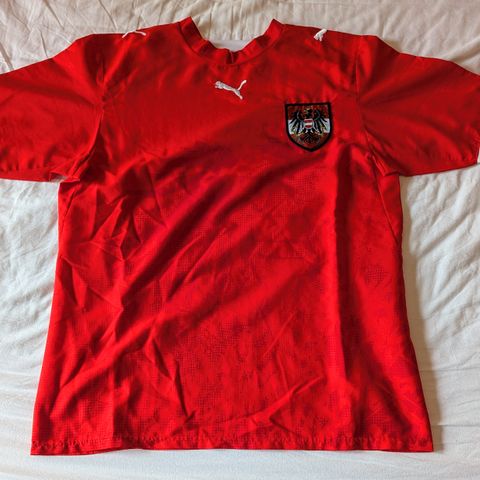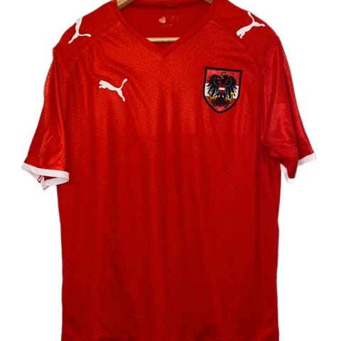 Super fed hjemmebanetrøje fra Østrigs fodboldlandshold i klassisk rød farve fra 2008 - 2009.