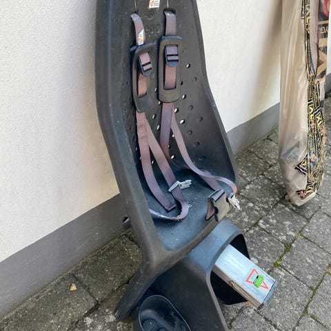 Børnesæde “junior” skal monteres uden beslaglagt og passer på elcykler med batteri bagpå.