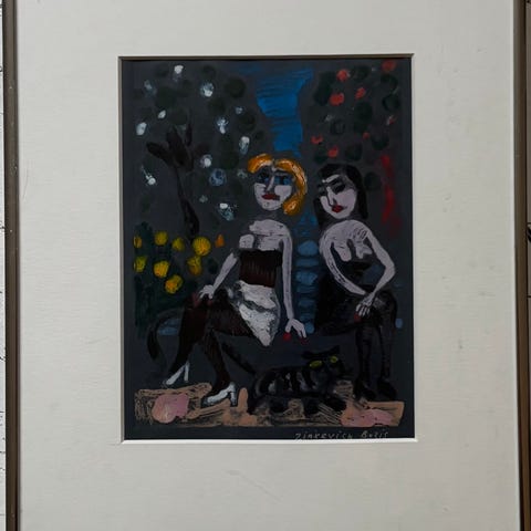 Signeret tryg, A. Grozek, motiv: Infinity, Grafisk billede i brunrødlige toner , der er to sommerfugle i de mørke hjørner. Mahogni ramme og glas. Både billedet og rammen er mere lys end de ses på fotos. Billedet kan bruges både på høj og lang kant. De udvendige mål 77x107 cm. Selve ramme er 4 cm i bredden. Alt er intakt. Pris inklusiv indramning var 2200kr. Sælges for 100kr. Oprydning ifm flytning tra et røg- og dyrefrithjem.