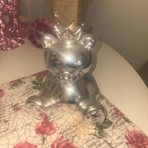 Sød sparebøsse udformet som BAMSE i sølvplet