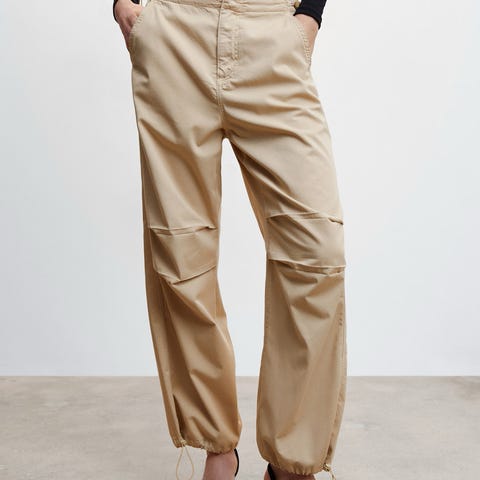 give 'em that desert flair! These baggy wide leg cargo pants have a silky satin construction, an adjustable drawstring waistband, five pockets, a zip-fly closure, reflective stripe details, and adjustable drawstrings at the leg cuffs.