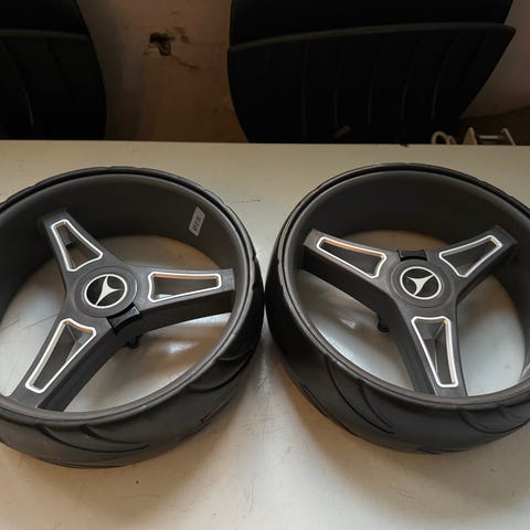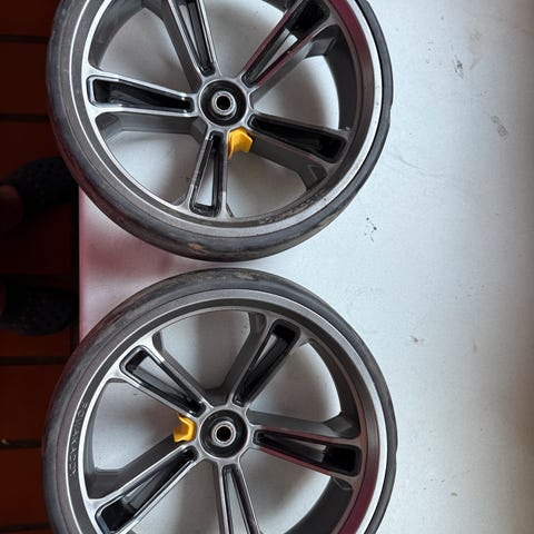 Andet golfudstyr, POWAKADDY HJUL, NYE Super lækre hjul til POWAKADDY el golfvogne / Golftrolleys. GUN-Metal. Modellen sidder på FX7 vognen originalt, men kan bruges på ALLE Powakaddy pånær CT modellerne. Prisen er for 2 stk. De kan afhentes i Aarhus N eller sendes med GLS for kr.59,- Prisen er fast og jeg ønsker ingen lave tilbud tak.