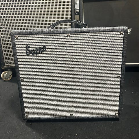 Fed kompakt rørforstærker. 24 W, indbygget tremolo og rørdrevet reverb, to kanaler, 12 “ Supro speaker, 18 kg.