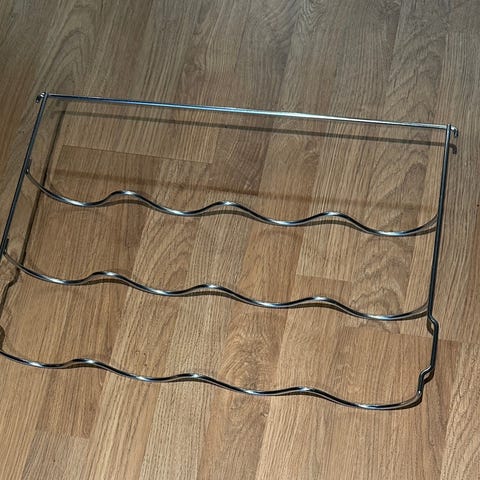 Fin og velholdt flaske holder. Den måler ca 30 cm X 47 cm. Kommer fra et ikke ryger hjem. Sælges da vi ikke har køleskabet mere.