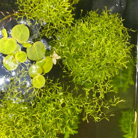 Flydende Stjerneløv (Riccia fluitans) er en hurtigtvoksende flydemos, som er en stor fordel at have i yngel- og rejeakvarier, da den store overflade og mange gemmesteder giver gode muligheder for at øge overlevelsesraten på dit yngel. Kan også sagtens finde sin plads i store akvarier.