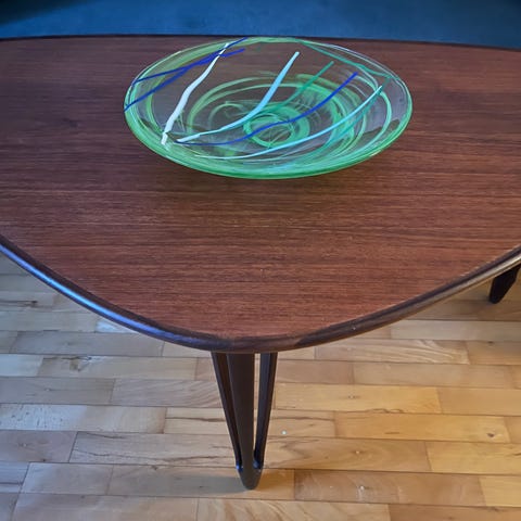 stor, tung glasvase i meget tykt glas med det flotteste spil i mønster og utrolig smuk blå farve. - Design Atoll Contrast, Anna Ehrner. Har kun stået til pynt, så ingen brugsspor. Vægt 3,6 KG, højde 20 cm, bredde 15 cm. ikke signeret..