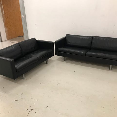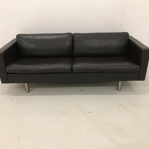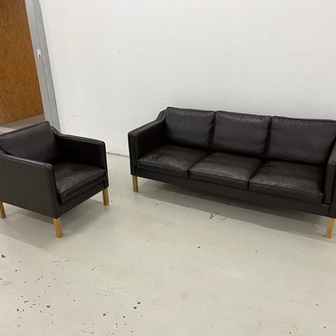 Hysterisk velholdt sofagruppe fra Arne Norell bestående af 3 Pers.Sofa og 2 stole i farven Dark Brown læder.