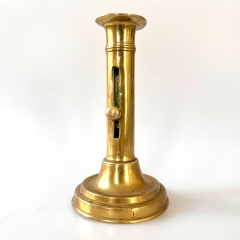 Sjælden og karakterfuld kontorlysestage i messing, formodentlig af hollandsk eller nordtysk oprindelse, dateret til omkring 1700–1750. Stagen fremstår med en antik reparation, der vidner om dens lange historie og brug.