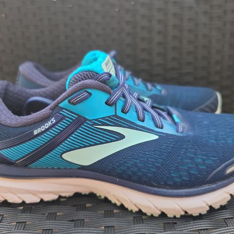 Løbesko, neutral, 320 g pr sko, ubrugt indvendig sål. Farve blue surf/web green