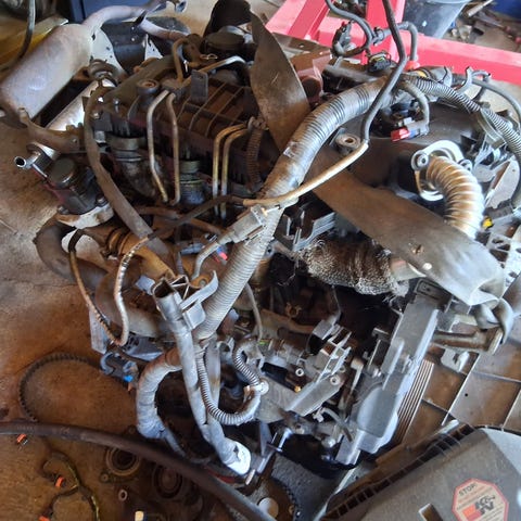Motor er hoppet i tandrem ved 1800 omd uden grimme lyde så den har formentlig kun bukket ventiler. Kom med et bud. Bliver hugget op til dele i uge 32