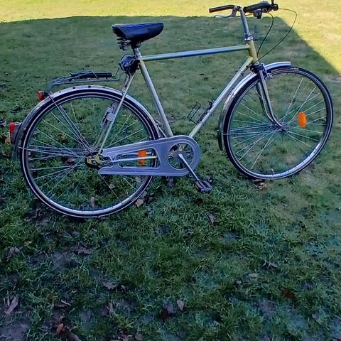 Står med alle originale dele (bortset fra dæk og slanger). Trænger til en kærlig hånd og gearene skal justeres men stellet er solidt.