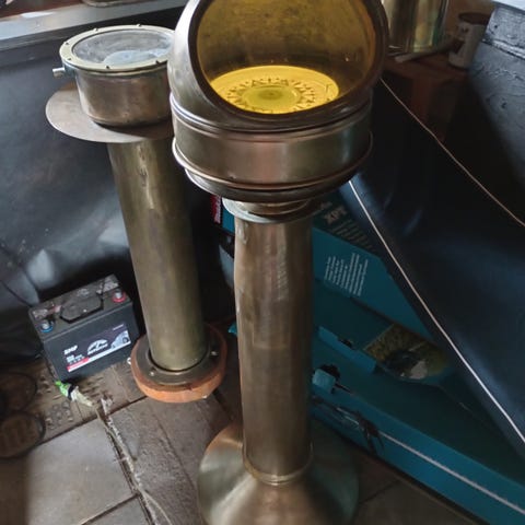 Pejler på messing pitestal,h 75 cm. Sender gerne!!!