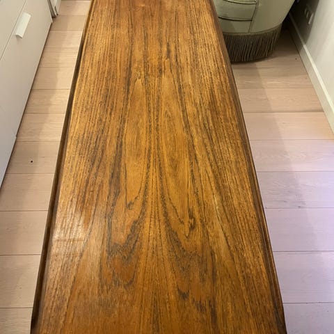 Dette smukke sofabord er lavet af ægte teak træ, kendt for sin holdbarhed og varme farvetoner. Med sit tidløse design passer det perfekt ind i enhver stue, uanset om du har en moderne eller klassisk indretningsstil.
