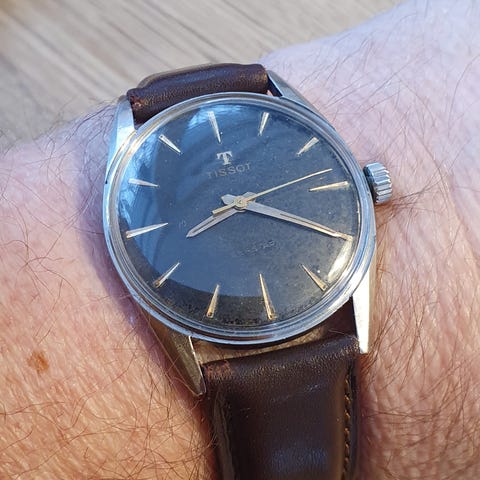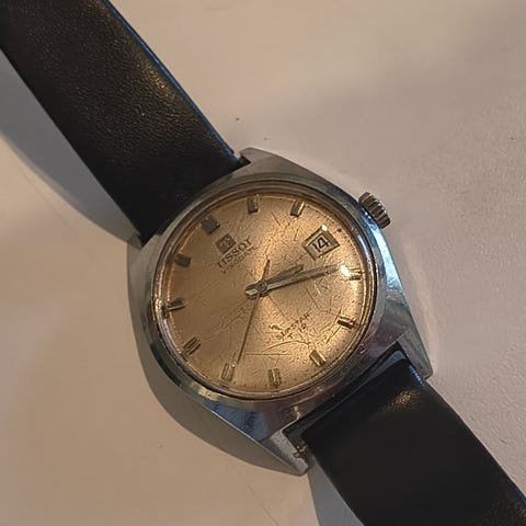 Tissot Seastar T12 Visodate Supercompressor fra ca. 1974. Alt er originalt. Remmen er dog udskiftet. Bezel bevæges inden i uret. Serviceret hos autoriseret urmager i 2023. I forhold til urets alder så er det i rigtig fin stand, så det har blot lidt patina og er et klassisk ur fra en svunden tid.