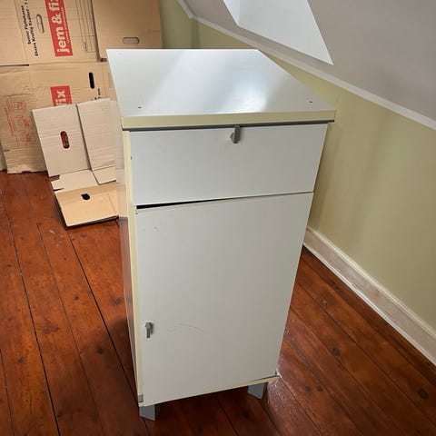 Fint lille skab. Ikke så dybt, men med fin plads indvendigt med 3 hylder