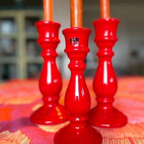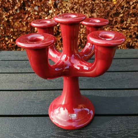 lysestage, Guldkroken, Fin julerød lysestage fra Guldkroken.
