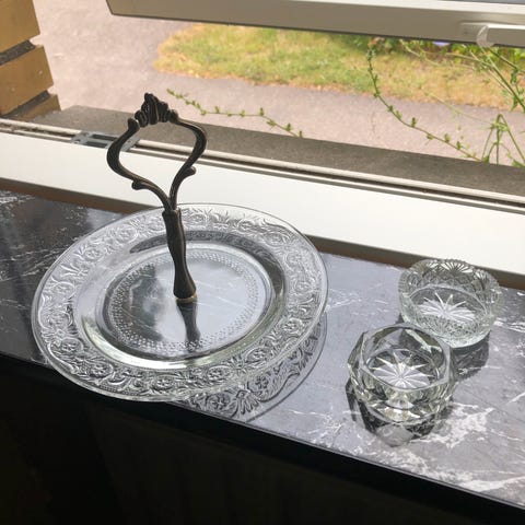 kagefad, Victoria P, Flot sølvplet kagefad Victoria P med Gravur Wilh. Schmith AS 23 cm i diameter med håndtag 27 cm. I håndgreb flotte ornamenter.