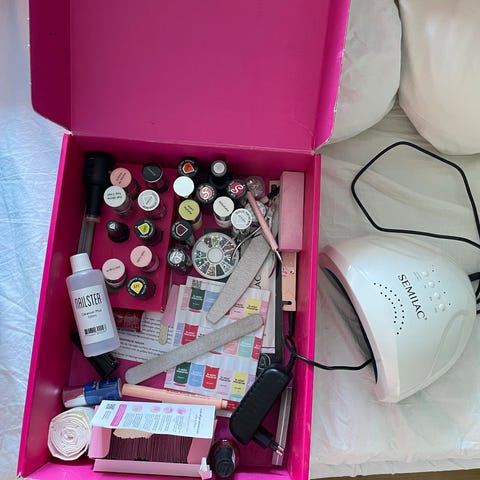 LED lampe på fod, stort udvalg af shellac lakker i mange forskellige farver (nogen helt nye i ubrudt emballage)- sælges KUN samlet!