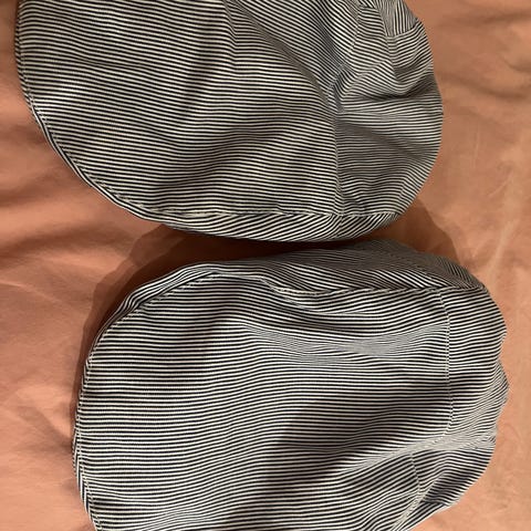 Hue, Kasket / tilbehør, Bona parte kids, str. 128, Smart beige hue (kasket / cap uden skygge) med blomst i rosa og beige med 3 perler. Bomuld. stofknap i toppen. Stoffet er beige med tynde striber i grønt og brunt. Indvendig beige foer.