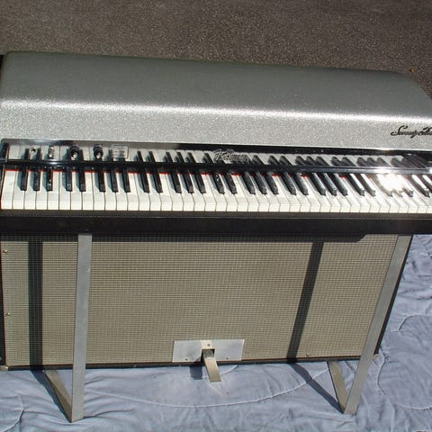 Jeg sælger mit Rhodes, da jeg ikke få det brugt og det fylder. Det spiller rigtig godt, men enkelte toner har mindre volumen end andre. Det har ikke generet mig, men nu er det nævnt. Ben og sustainpedal er ikke originale, men helt som de skal være. Toppen følger med. Tolex er lidt medtaget nogle steder. Bytte med mindre Nord Electro eller en guitar + penge kunne også være interessant.