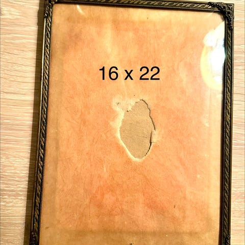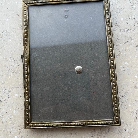 Gammel fotoramme i mørkt metal og med buet glas. 24x19 cm