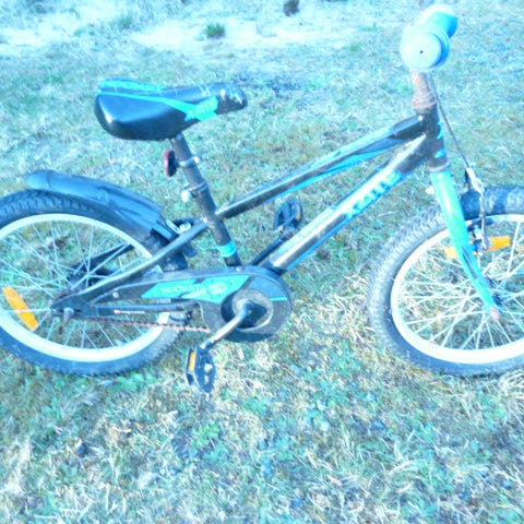Drengecykel ROCKY med støtteben håndbremse foran og fodbremse bagpå hjulstørrelse 8tommer stelstørrelse 22cm hjulstørrelse 8tommer sadelhøjden kan indstilles til benlængde fra 40cm til 50cm målt fra lysken til fodballen skal afhentes i 8260 Viby J Jylland absolut fast pris kan ikke forhandles hvhskur
