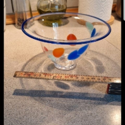Flot keramik skål fra Bornholm, glaseret nede i skålen, i blålige nuancer.