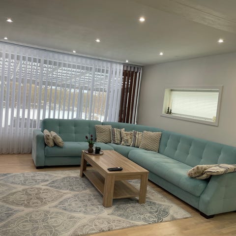 ▪ Moderne hjørnesofa med sovefunktion og to rummelige opbevaringsrum. Justerbare nakkestøtter giver ekstra komfort til afslapning. Det lyse og bløde stof passer perfekt til forskellige indretninger. En komfortabel løsning til både daglig brug
