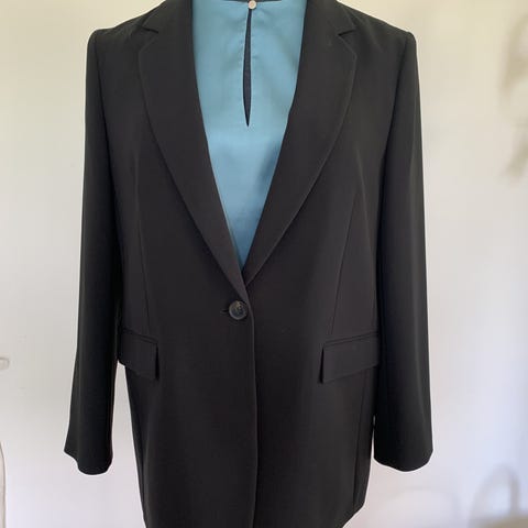 Blazer fra BOSS lyserød i størrelse 44, blazeren er fremstillet i 69% triacetat og 31% polyester medens foret er fremstillet af 64% viskose, 43% polyamid og 3% elasthan. Brystmål cirka 108 cm, længde cirka 76 cm, længde på slids cirka 16 cm.