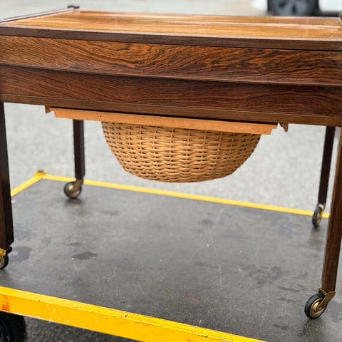 Smukt mellemstor sybord i palisander med fletkurv