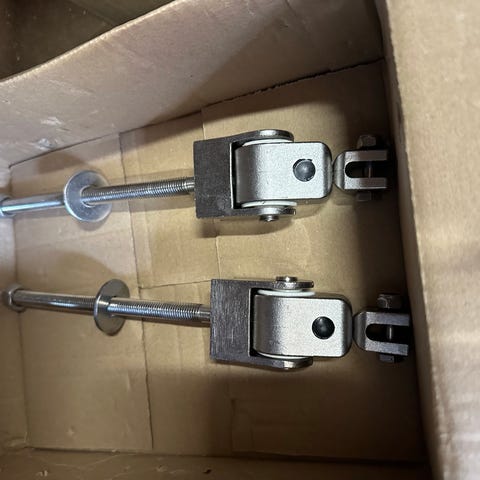 Har dette væg gynge beslag som er ubrugt. Bemærk at der ikke medfølger skruer eller gyngekroge. Har aldrig været i brug, stadig i medfølgende emballage.