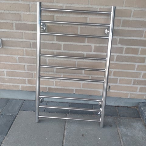 Helt ny Paris håndklædetørrer 900×340 i hvid. Håndklædetørreren kan tilsluttes fjernvarme/centralvarme, el-varme eller en kombination af el og fjernvarme. Og 2 stk. vinklet ventil til direkte rørføring igennem væggen.