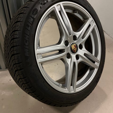 Porsche originale alufælge med dæk. Ingen ridser og skade ikke skæve. Dæk sensorer. Gode Michelin dæk. Foran 255.45.19 5mm. og bag 285.40.19. 6mm. Passer porsche panamera, taycan, og andre modeller. Ring for info 91114150.