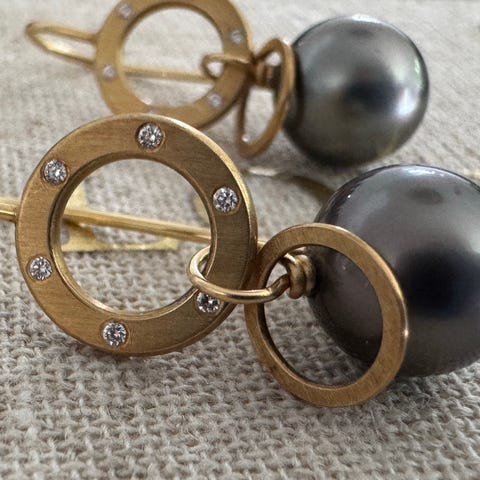Meget smukt 18K unika armbånd med store Tahiti perler, Ametys, Chalcedon og Amazonia. Bemærk at sten og perler er naturmaterialer og kan have naturlige inklusioner m.m.