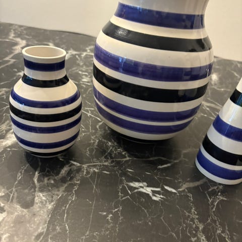 4 Kahler vaser i forskelllig farve og størrelse samt 3 lysestager lilla/sort. Sælges samlet for 500 kr. eller hver for sig