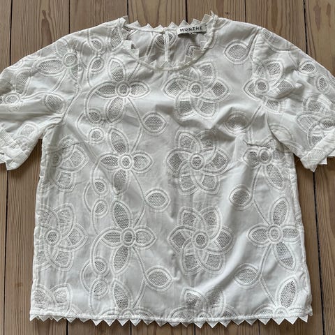 Meget lækker, blød og let bomuld. 2 lag over det hele også i ærmerne ... så den er let uden at være gennemsigtig.