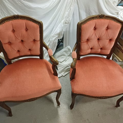 De skal ombetrækkes og evt.også limes op i samlingerne - men grundstolen i dem er meget fine og stemningsfulde.