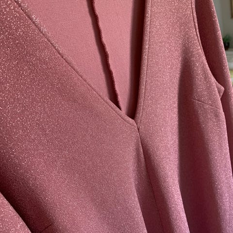 Fantastisk fest kjole 👗 a-formet og falder virkelig smukt. Gl. rosa med glimmer