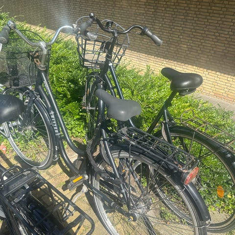 Et hjulet cykel med 24” hjul str. Skal nok lige pumpes, da den har stået stille et stykke tid.