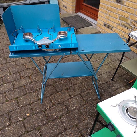 Lille gaskogeblus med én brænder, der kører på standard 206 propan-butan-patroner. Det har et holdbart stålkabinet, stålpatronklemmer, fire aftagelige stålpandestøtter og en aftagelig messingbrænder Selvom det er lavet af et tungt materiale, er vægten lav, komfurer. Det er nemt at pakke med brænder og støtter fjernet.