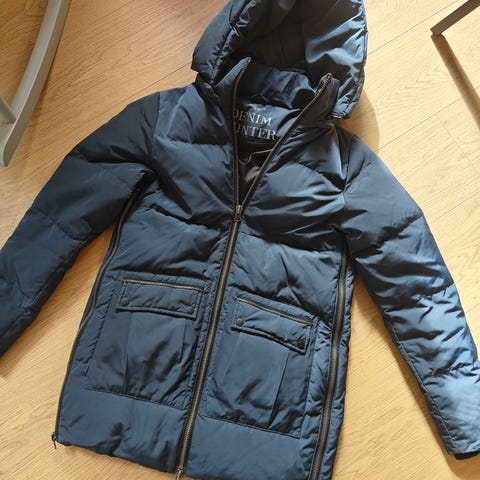 Vinterjakke, str. 40, Suit, Blå, Bomuld nylon og polyester, God men brugt, Dejlig varm foret jakke med hætte. Lukkes med lynlås og knapper pæn stand. Elastik i taljen og lommer foran. Inderlommer.
