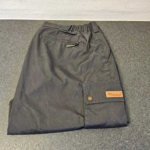 light khaki, C48, TC-1200 materiale, lårlomme på hver side med trykknap, lynlås lomme på venstre side, 2 baglommer m/lynlås, lynlåslomme på siden som kan anvendes som sikkerhedslomme eller mobillomme, ekstra forstærkning på knæene, elastik i taljen, uv-beskyttelse. livvidde 81-92 cm, indvendig benlængde 83 cm. Helt som nye. Sender gerne, dog ikke med fiks færdig, porto oveni