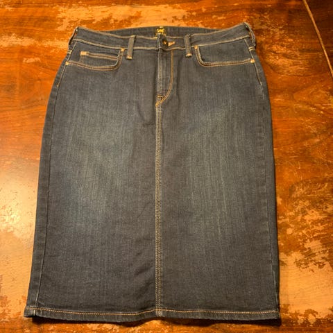 Pencil cowboy nederdel, str. 26, LEE, Mørkeblå, Bomuld med strech, Næsten som ny, Så flot nederdel med høj talje. Masser af stræk i. Sender gerne og har mange gode billige annoncer!