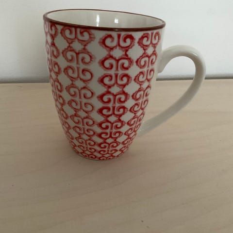 Kruset er robust og har en go’ rummelig størrelse: kan indeholde alt - cafe latte, the, cacao, sort kaffe mm.