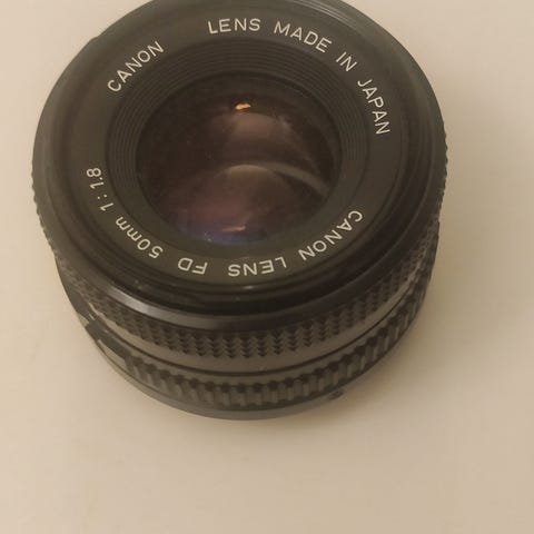 Sælger et velholdt Canon FD 50mm f/1.8 objektiv. Dette 50mm "normalobjektiv" er en favorit for mange grundet sin evne til at levere knivskarpe billeder med en fantastisk, cremet bokeh ved f/1.8. Det er også ideelt til fotografering i svagt lys.